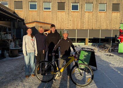 Oline, Ola, Theodor og Elias var de raskeste til å sette sammen en sykkel og teste om den virket.
