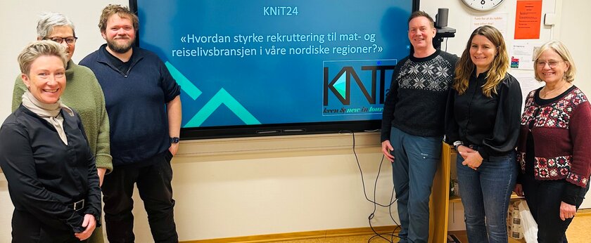 Prosjektgruppa Ung i reiselivet: f.v. Ruth Mæhlum (Thon Hotel), Gro Barkenæs (Gudbrandsdalsmat), Tor Ivar Furuset (Opplæringskontoret Brimi-kjøken), Espen Hartløv (Prosjektleder Ung i Reiselivet/Opplæringskontor Brimi-kjøken), Mette Damstuen (Opplæringskontor Gudbrandsdal) og Signe S. Storødegård (Avd.leder Nord-Gudbrandsdal vgs./Prosjektleiar KNiT24)