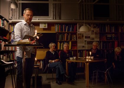 For voksne arrangerer flere bibliotek Skumringstimen på kvelden, med høytlesning på samme måte fra en tekst for voksne.