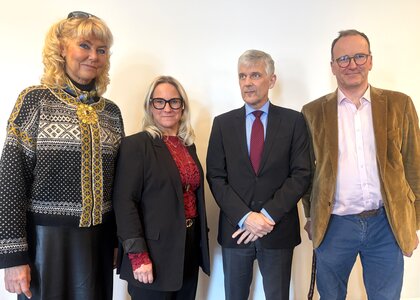 Fra venstre: fylkesvaraordfører Hanne Alstrup Velure, Åsa Johansson ordförande för regionstyrelsen i Värmland, Mikael Eriksson, den svenske ambassadøren til Norge og John Creed, daglig leder i Norsk-Svensk Handelskammer.