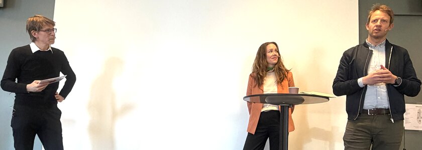 Fra venstre: Mass Soldal Lund, professor ved Universitetet i Innlandet, Peder Lombnæs, førsteamanuensis ved Universitetet i Innlandet og Camilla Rostad, leder Innlandet Bondelag.