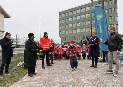 Onsdag 26. november åpnet kollektivterminalen med barnehage, ordfører Elin Såheim Bjørkli og Suhur Lorch-Falch som er nestleder i hovedutvalg for samferdsel.