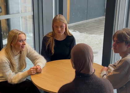 Ylva Haug-Stenbergløkken, Frida Kvarberg, Elliot Kvamme og Amina Tsarojeva er veldig glad for midlene som skolen får gjennom ULF-ordningen.