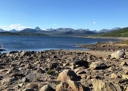 Mette og gode etter maten fra forrige tettsted beveger vi oss ca. 200 kilometer nordvestover. Vi skal til et vann hvor den første betjente DNT-hytten kom i 1870. Vannet som ble oppdemmet for over 100 år siden ligger i en kommune som er vertskap for en av Innlandets mest populære musikkfestivaler.