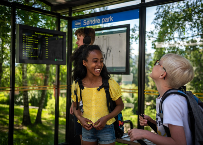 Barn som venter på bussen, Lillehammer