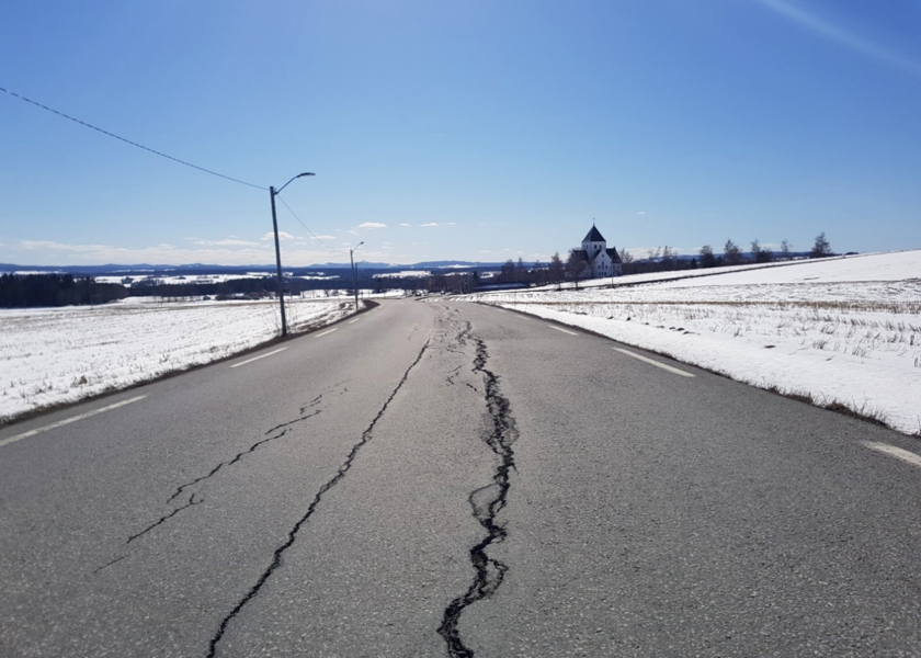 Bilde av en vei med store sprekker - Klikk for stort bildeKrakelert asfalt på Vestre Totenveg (fv. 2370). Steinar Svensbakken
