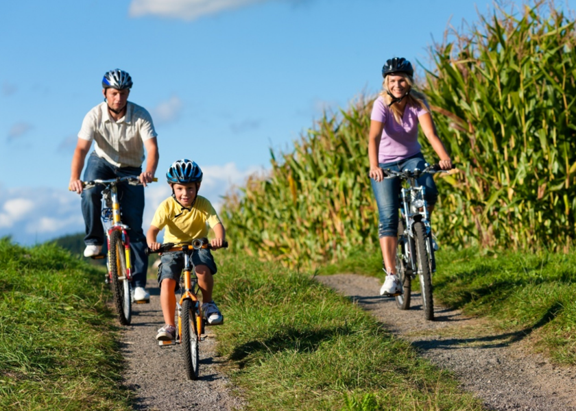 Bilde som viser barn og voksne på sykkel på en landevei - Klikk for stort bildeBarn og voksne på sykkel. Mostphotos