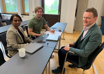 Gruppearbeid i samferdselsutvalget: fra venstre Suhur Lorch-Falch (MDG), Mats Ellingsen (H) og Pål-Arne Oulie (Sp).
